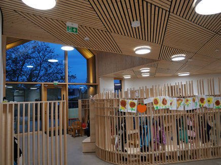 Bei dem Ersatzneubau der Kindertageseinrichtung für 111 Kinder auf der Chladeniusstraße in Großenhain wurde unser Büro mit den Leistungsphasen 1-9 nach HOAI betraut. In der Anlagengruppe 4 wurde dabei u.A. eine moderne und energieeffiziente Beleuchtungsanlage geplant, welche auf die architektonischen Besonderheiten des Gebäudes abgestimmt ist und diese unterstreicht. Weitere Planungsinhalte waren Brandmelde- und Sicherheitsbeleuchtungsanlage sowie Türsprechstellen und ein Daten- und Telefonnetz in der Anlagengruppe 5. Ein offenes pädagogisches Konzept spiegelt sich in dem innovativ gestalteten Bau wider. So bildet ein lichtdurchfluteter Spielflur jeweils den Mittelpunkt der Kindergarten – und Kinderkrippeneinheit. Von diesem sind alle Gruppenräume, die Sanitäranlagen und Personalräume direkt und auf kurzem Weg erreichbar.